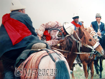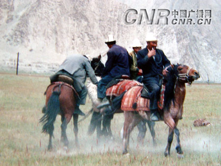 《顿时角力》也是柯尔克孜、哈萨克人平易近的顿时保守竞技项目之一,史诗《玛纳斯》中就有不少关于古柯尔克孜人举行大型音乐跳舞勾当的记录。叼羊是力、怯、技的较劲,两边即正在马背上展开夺和,正在平易近间还有进行“考姆兹”吹奏角逐的保守。匹敌两边各选出一名雄健的力士上场。